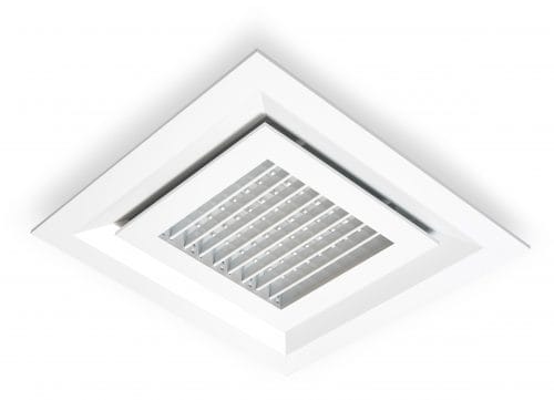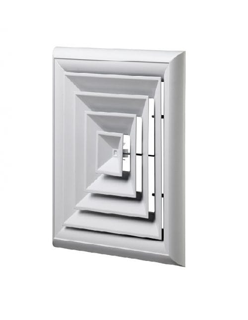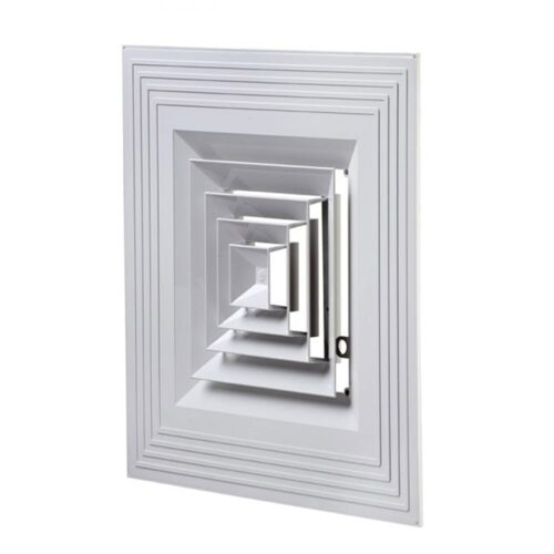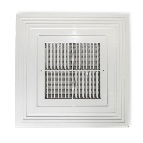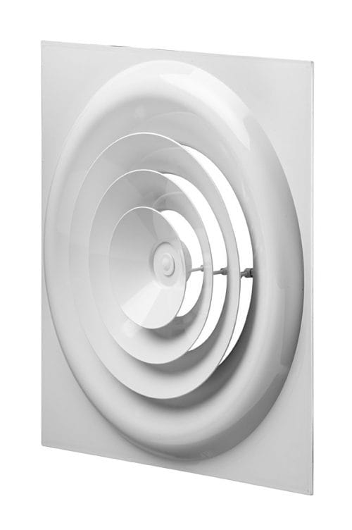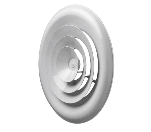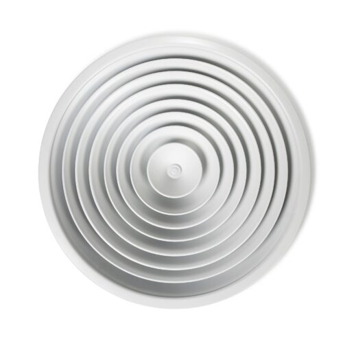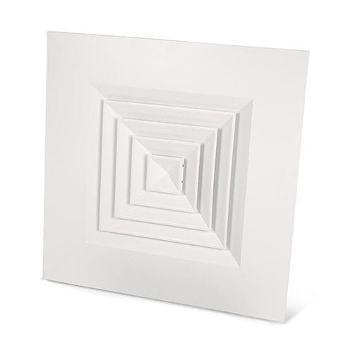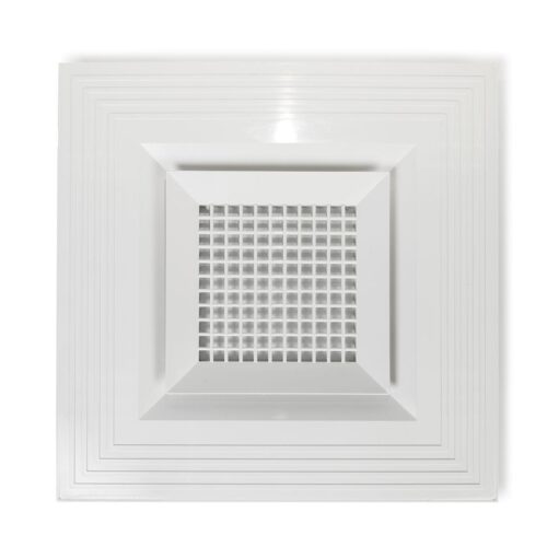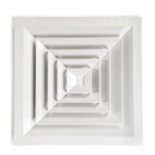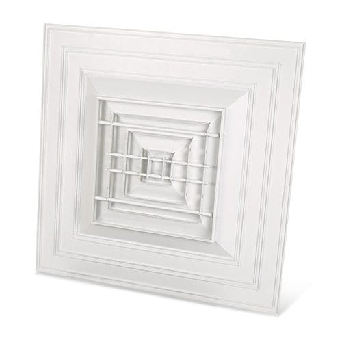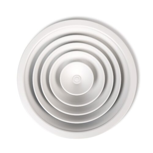 Our ceiling diffusers are made by injection molding from ABS non-toxic plastic suitable for hot or cold air (0 to 65 °C / 30 to 140 °F). The attractive diffuser blends in with any white room decor, prevents condensation, has light weight and is scratch and corrosion resistant.